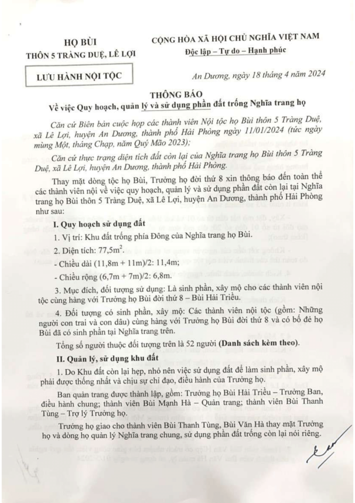 Dòng họ Bùi – xóm 5 Tràng Duệ, Lê Lợi, An Dương, Hải Phòng