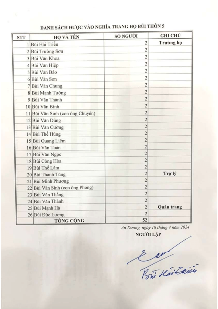 • Thông tin nghĩa trang họ Bùi