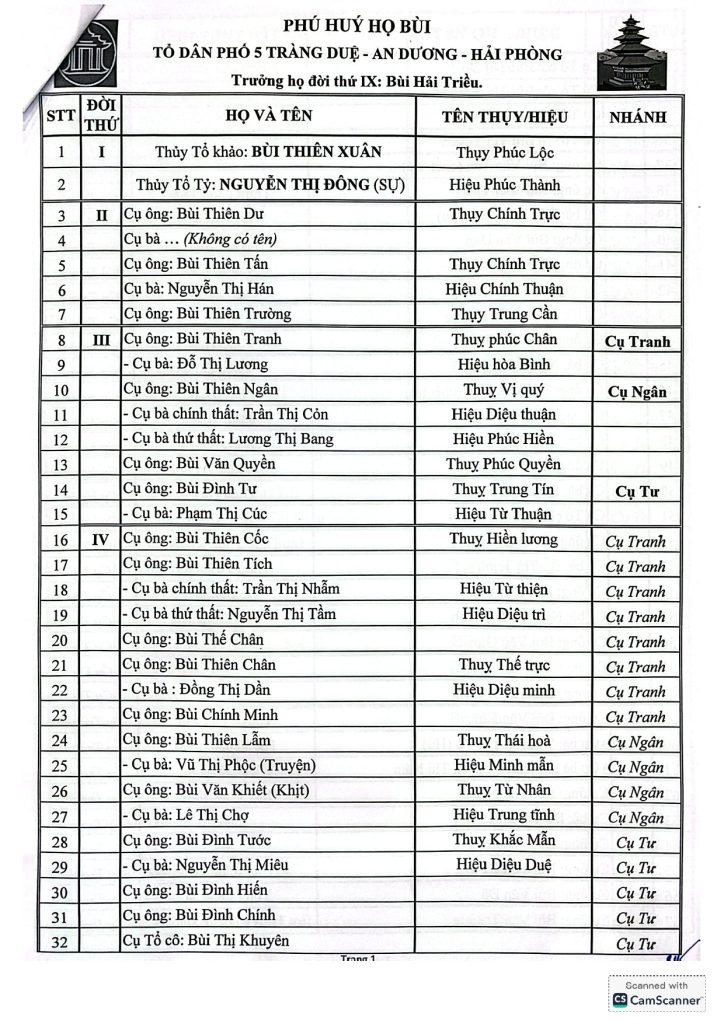 Dòng họ Bùi – xóm 5 Tràng Duệ, Lê Lợi, An Dương, Hải Phòng